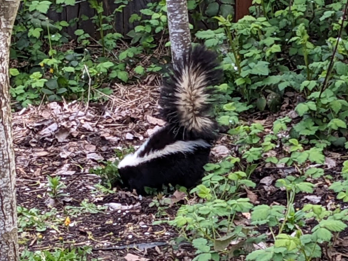 Tuesday the 9th, I saw a skunk in the back yard! He was an adorable little dude, and I kept my distance. This is the skunk! I love him.