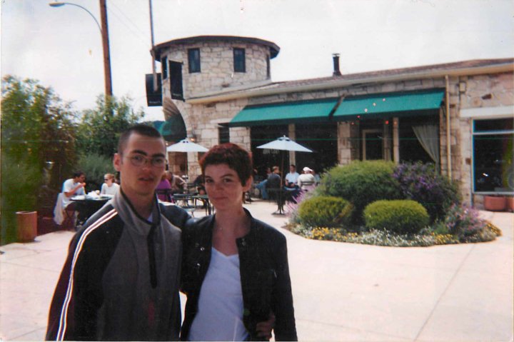 I gained weight and got somewhat healthy. I was still thin, about 120 lbs., but I wanted to lose weight. Not much. Ten pounds maybe. But I had the tiniest hint of a belly. I thought that if i could start working out again and eat better, I’d be as close to perfect as someone with tiny tits and a shitty jawline could ever be. Of course, I’d never be gorgeous but I could pass for pretty. With some work. Here’s a picture of me and my brother, dancing to “Old Time Rock And Roll” at his wedding in August 2001: